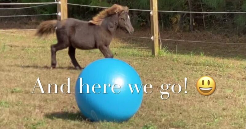 Foal runs like a crazy horse after finding his birthday present