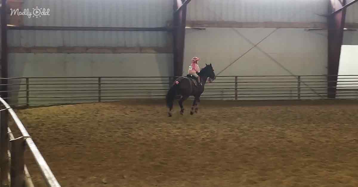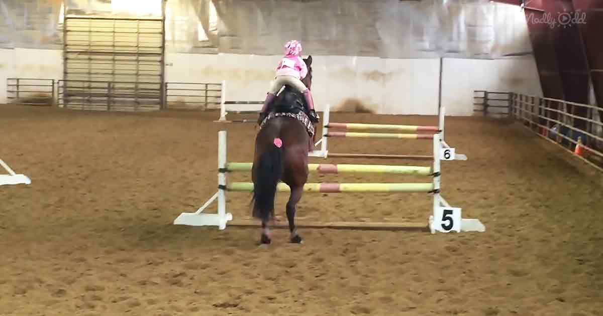 Something like this happened recently when a 5-year-old girl, Kinsley, impressed her spectators when she rode around on a Morgan Draft Cross mare named Ruby. She rode on her horse around a jumping course.