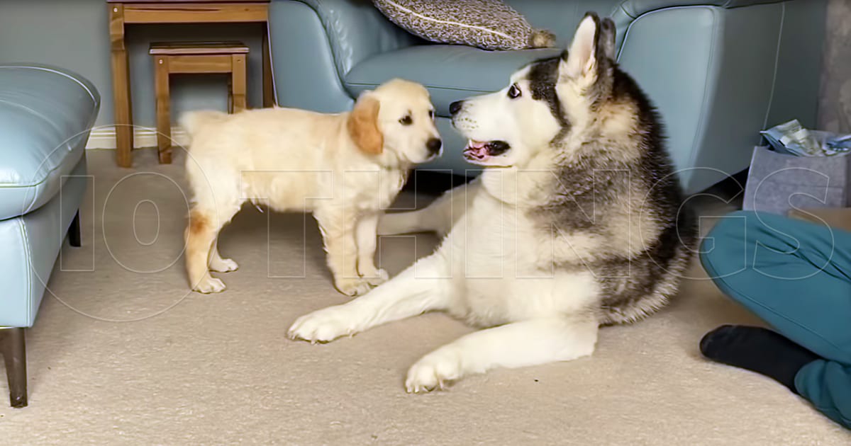 The way that Millie the friendly, maternal husky befriends that golden retriever puppy is the lesson in bonding that the little one needed.