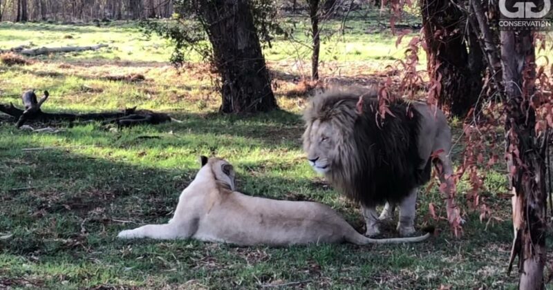 The Glen Garriff Lions NPC Sanctuary is located in South Africa and has around 77 lions under their care. The lions live here with their families. They are left free in a natural habitat to live their lives in a peaceful environment. One such lion couple living here is Shadow and Venus. They have recently got together, and the male looks pretty possessive about his lioness and follows her everywhere.