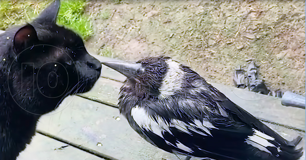 Rescued Magpie Loves His Happy Home & The Cat Too