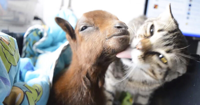 “Rescued Cat Assists In Nursing Tough Baby Goat Back To Health”