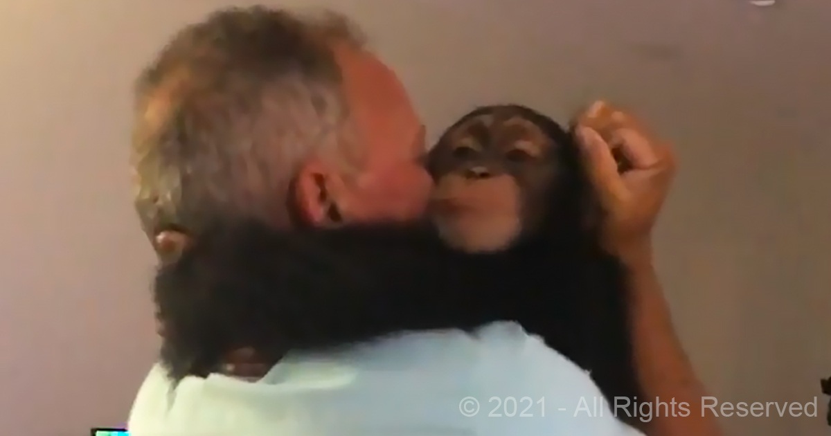 Chimpanzee is overjoyed to see the couple who brought him back from the brink of death