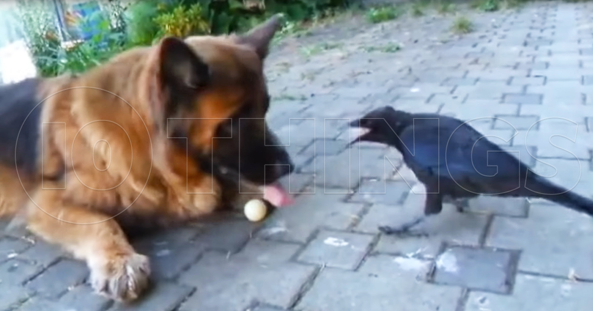 Goofy Crow and German Shepherd Friends Play Unique Game of Fetch