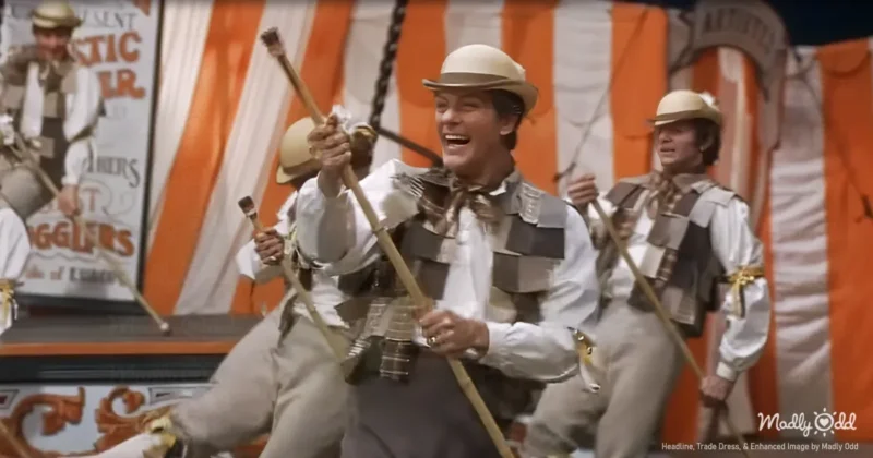 Dick Van Dyke pulls off one of the most complex and chaotic dance routines ever filmed in the “Me Ol’ Bam-Boo” scene. Watch him nail every step, proving that even a frantic escape can become dance magic.