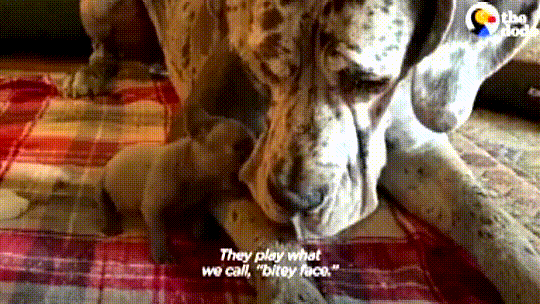 Frenchie puppy is taken under the care of a Great Dane