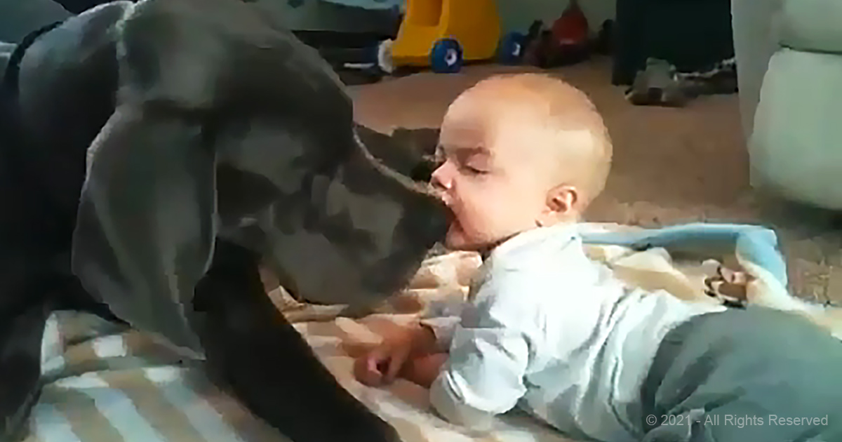 Baby boy and GIANT Great Dane can’t stop hugging