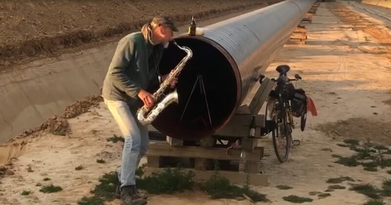 This Cool Cat Creates A Jazz Concert Using His Saxophone And A Massive Pipe