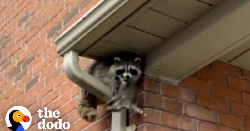 Guy rescues baby raccoons stuck in roof; Mama raccoon waits nearby