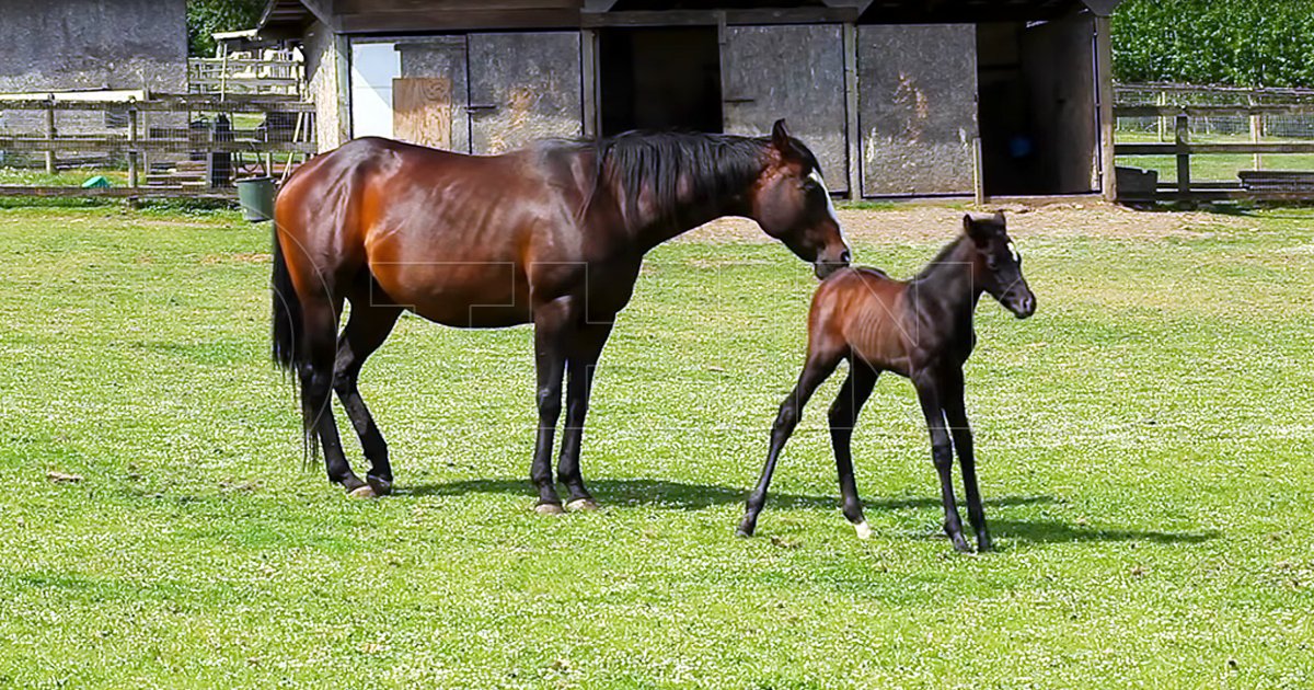 Sweet Baby Horse Gets Gentle Lunch Alarm From Mom