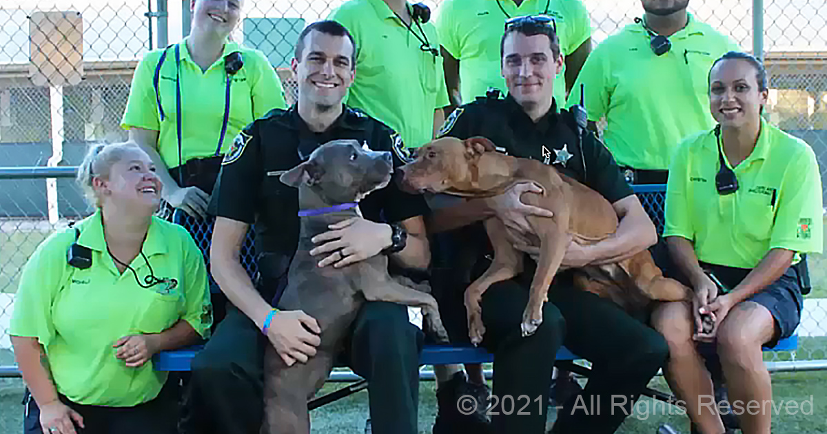 Officer stays with two terrified pit bulls after finding them alone