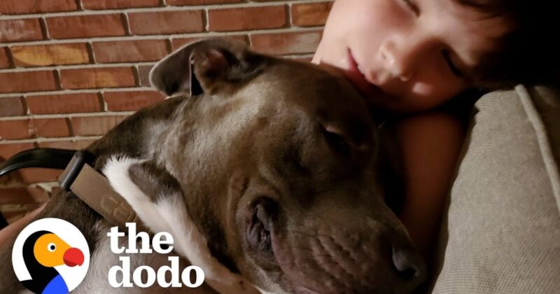 Little boy and his Pittie reunite after two months apart.