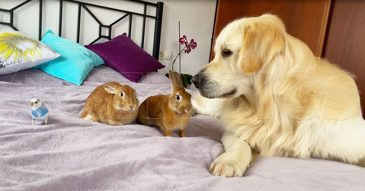 A Pair Of Rabbits & A Budgie Are Best Friends With Bailey The Retriever