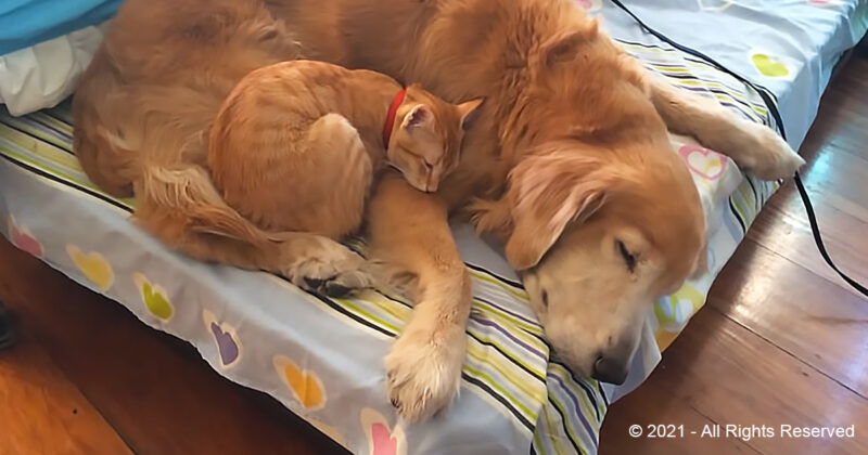 Rescue kitten and golden retriever become inseparable couple