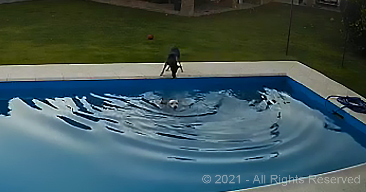 Old and blind, senior dog slips and falls in a pool, and her pup best friend comes to the rescue