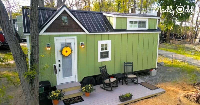 “Salvaged Chic” Off-Grid Tiny House Built Free With Reclaimed Materials