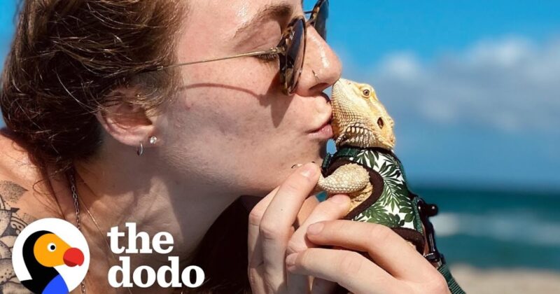 Puff is a Bearded Lizard who loves to go wherever her mom, Shannon, takes her. Shannon thought she would get a dog as a first pet, but she was allergic to cats and dogs. Puff turned out to be the perfect companion, and they spent all their time together. When Shannon is working, Puff will stay on her shoulder or sometimes in front of the computer.